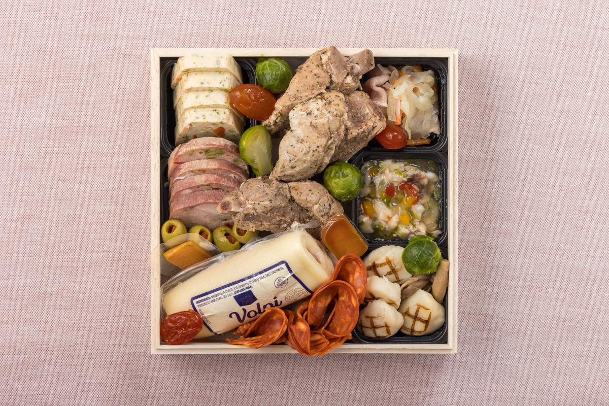 ◆俵物スライスからすみ◆たこの彩りマリネ◆ドライトマト赤ワイン煮◆帆立貝柱燻製グリル◆スモークサーモンと野菜のテリーヌ◆牛タンポーク◆スタッフドオリーブアンチョビ◆きのことあさりのアヒージョ◆生ハムマリネ◆チョリソスライス◆うまホロ豚肩スペアリブ◆ロルティーニ◆芽キャベツ