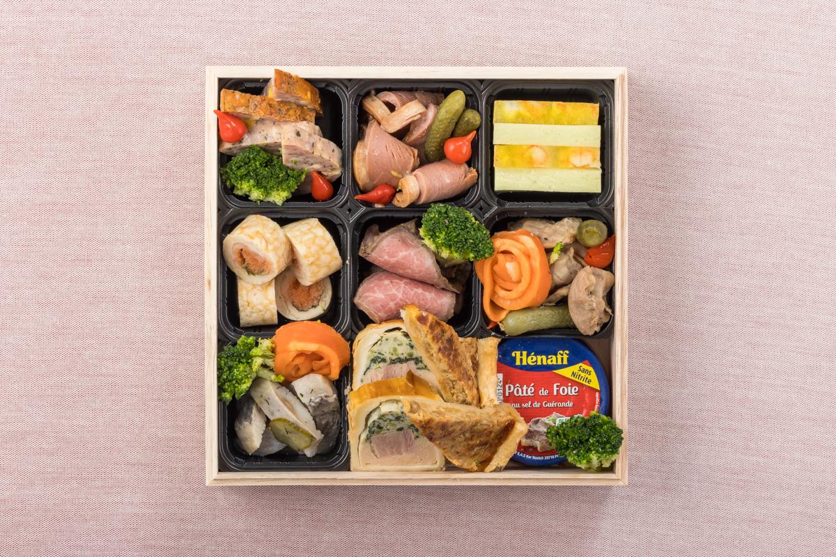 ◆ニシンのマリネ◆紅茶鴨からし風味◆ブロッコリー◆チキンのパテ◆北海道産鶏明太子クレープ◆若鳥砂肝燻製◆コルニッション◆エビサフランテリーヌ◆トラウトローズ◆黒毛和牛ローストビーフ◆ペッパードロップ◆ミートローフ バジル&チーズ◆オニオングラタンキッシュ◆豚肉レバーパテ